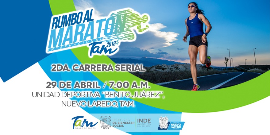 El Instituto del Deporte de Tamaulipas, en Coordinación con el Gobierno Municipal de Nuevo Laredo, convocan a la segunda carrera serial previo al “Maratón Internacional Tam” que en esta edición se realizará en la ciudad fronteriza de Nuevo Laredo.