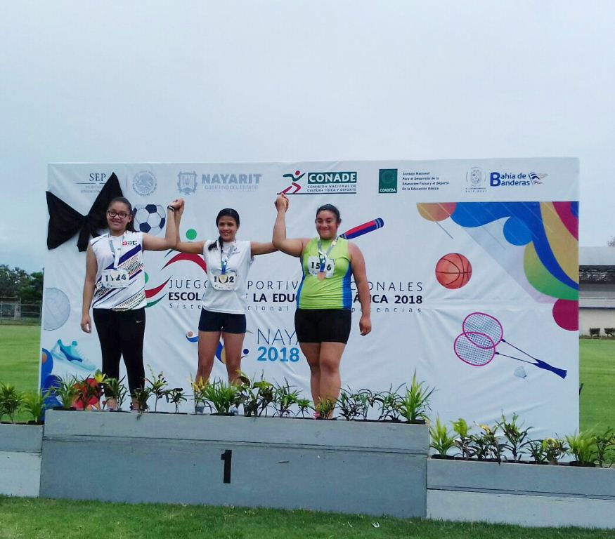 Nuevamente atletas de la frontera otorgan a Tamaulipas medallas dentro de los Juegos Deportivos Nacionales Escolares de la Educación Básica Nayarit 2017-2018 al arrancar la jornada inaugural del nivel Secundarias en la pista y campo de la Unidad Deportiva de San José del Valle.