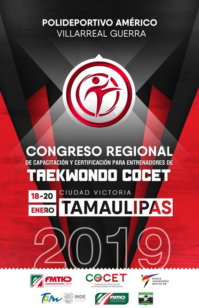El estado de Tamaulipas recibirá el Congreso Nacional y Capacitación para entrenadores de Taekwondo 2019, por primera vez del 18 al 20 de enero de 2019.