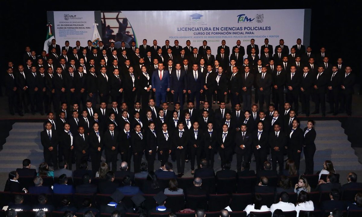 Esta mañana se graduaron 403 alumnos de la Universidad de Seguridad y Justicia de Tamaulipas, dentro de la misma ceremonia el Gobernador hizo entrega de 40 nuevas patrullas.