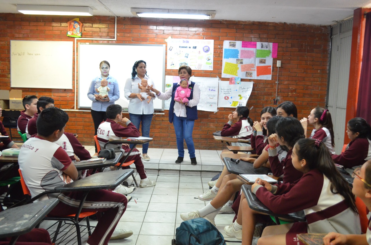 Ciudad Victoria, Tamaulipas.- Para promover la prevención de embarazos en menores de edad, el Sistema DIF Victoria, llevó el Programa “Piénsalo Bien”, a la Secundaria Técnica Número 1, Álvaro Obregón. En esta dinámica participaron cerca de 40 adolescentes, quienes pudieron interactuar con un simulador de embarazo y los “bebés virtuales”.