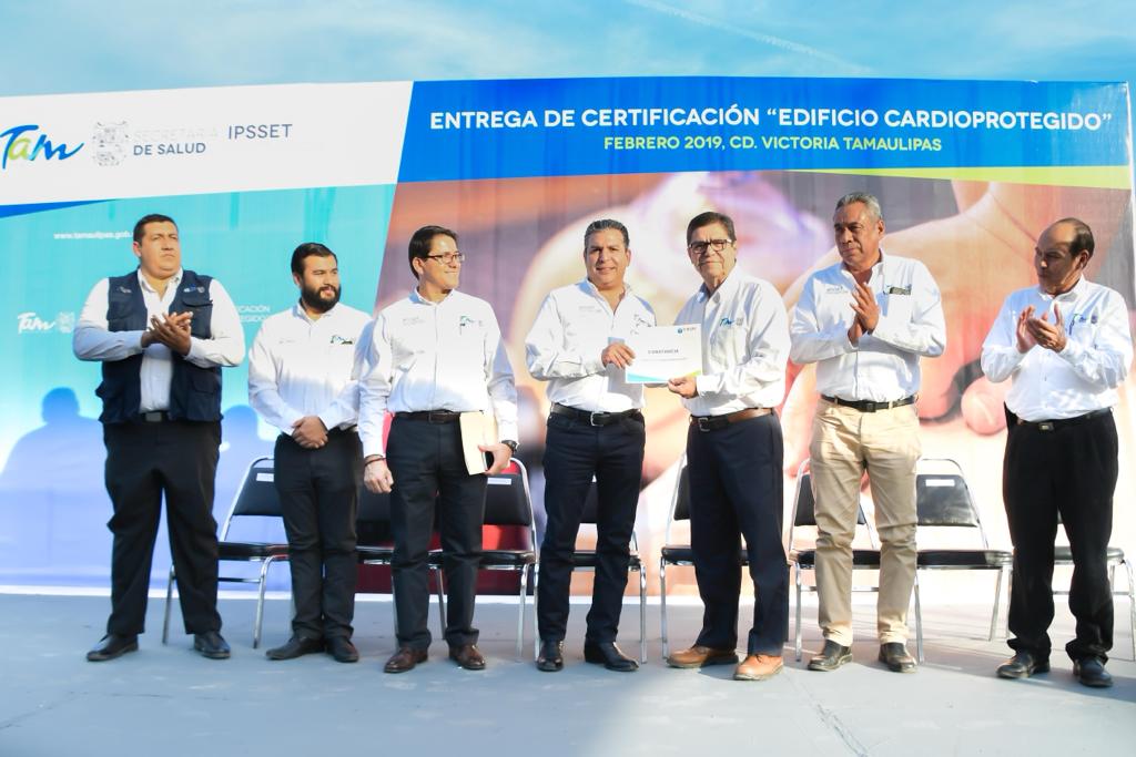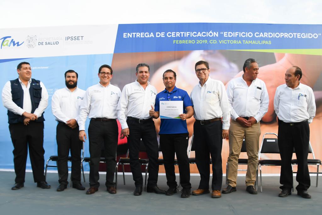 Ciudad Victoria, Tamaulipas.- La Unidad Deportiva del Instituto de Previsión y Seguridad Social del Estado de Tamaulipas, recibió la acreditación de Edificio Cardioprotegido que otorga la Secretaría de Salud a los edificios públicos que cuentan con equipo Desfibrilador Externo Automático y personal capacitado para atender una emergencia en caso de ser necesario.