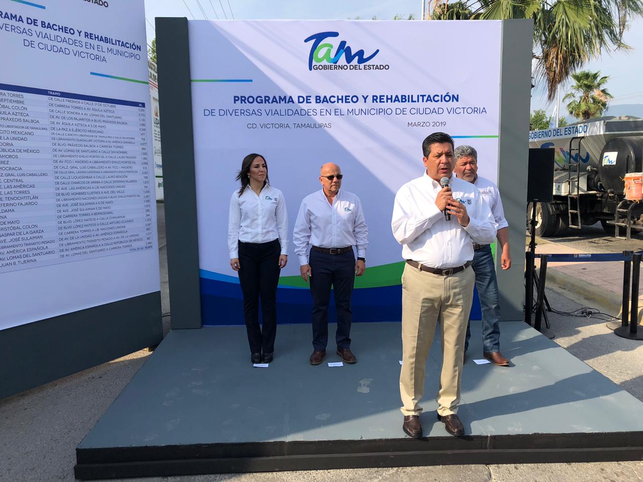 «El Gobierno de Tamaulipas en conjunto con el Gobierno Municipal vamos a dignificar las calles y avenidas de esta ciudad capital de Victoria y es por ello que estamos arrancando este programa de bacheo y recarpeteo de diferentes avenidas de la ciudad debido a un reclamo generalizado de las familias pues definitivamente le hacía falta no una manita de gato sino una manota de tigre» dijo el mandatario estatal.