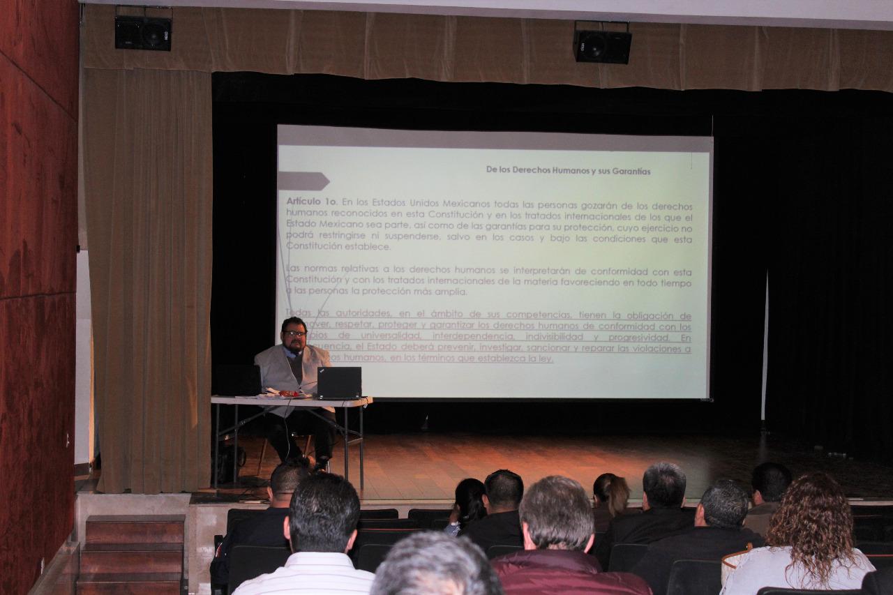 Los servidores públicos asistieron a la actividad académica organizada en coordinación con la Dirección General del Servicio Profesional de Carrera a través del Instituto de Capacitación Técnica y Profesional (INCATEP), la cual fue impartida por el Mtro. Orlando Javier Rosado Barrera Primer Visitador General de la Codhet.