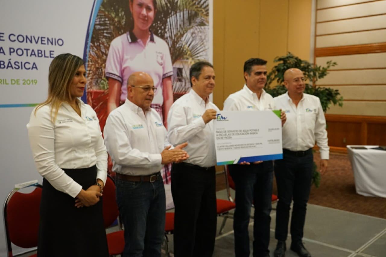 Ciudad Reynosa y Matamoros, Tam.- El Gobierno del Estado de Tamaulipas llevó a cabo la entrega de recursos y Firma de Convenio del pago de servicio de agua potable a escuelas de Educación Básica en el municipio de Reynosa y Matamoros.