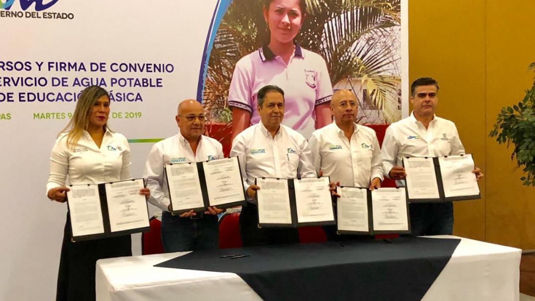 Asimismo en el municipio de Matamoros, firmaron el Encargado del Despacho de la SET y el Gerente General de la Junta de Aguas y Drenaje de Matamoros, Guillermo Federico Lash de la Fuente, convenio que cubrirá las necesidades de los más de 83 mil 300 alumnos de esa ciudad.