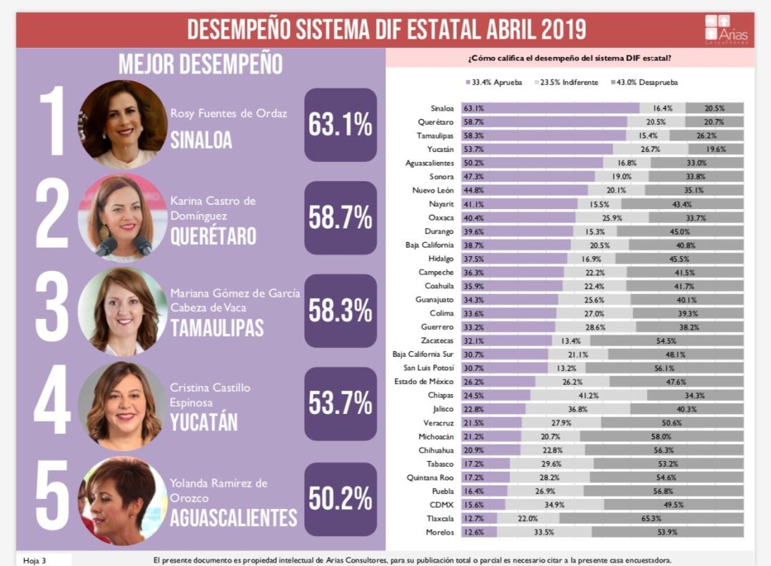 La titular del DIF Tamaulipas es una de las dos presidentas que se ha mantenido dentro de las primeras 5 posiciones durante las evaluaciones realizadas por esta encuestadora a nivel nacional.