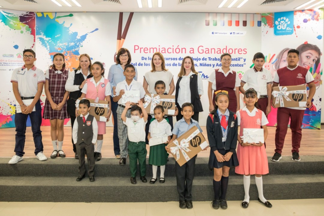 Cd. Victoria, Tamaulipas.- Con el objetivo de promover la participación y la difusión de los derechos de la niñez a través de la expresión artística, así como la prevención del trabajo infantil, el Sistema DIF Tamaulipas que preside Mariana Gómez de García Cabeza de Vaca, premió a los ganadores del “Concurso de Elaboración de Cartel de los Derechos de Niñas, Niños y Adolescentes” y “Concurso de Dibujo sobre el Trabajo Infantil”.