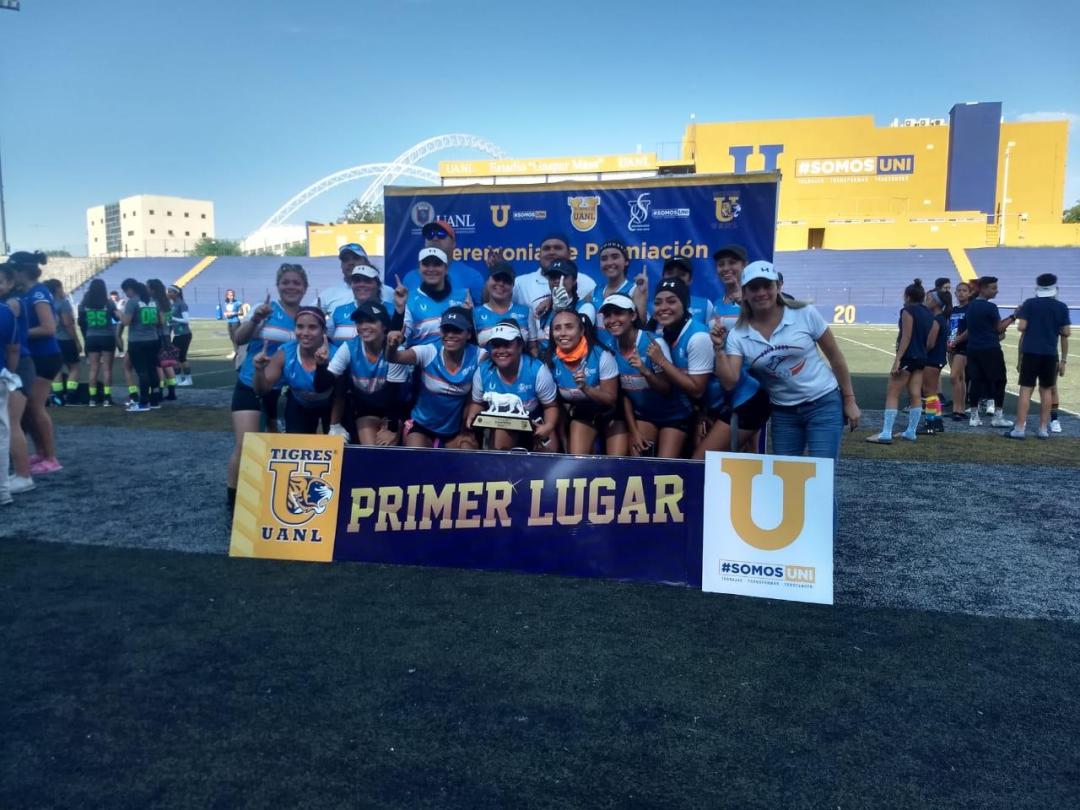 Monterrey, Nuevo León.- El equipo femenil de Tochito Bandera de la Universidad Autónoma de Tamaulipas, se proclamó campeón en el Torneo de la especialidad “Desafío Azul y Oro”, dentro de la categoría Femenil Básica, que se celebró este sábado 15 y domingo 16 de junio, en instalaciones de la Universidad Autónoma de Nuevo León.