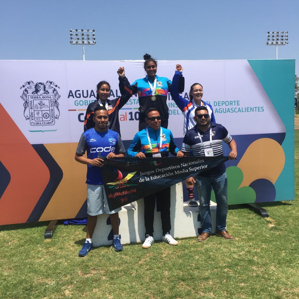 Especialista en el lanzamiento de Disco, Ximena superó los 33 metros, para subir al podio de los ganadores, en este evento avalado por el Consejo Nacional para el Desarrollo del Deporte en la Educación Media Superior y la CONADE.