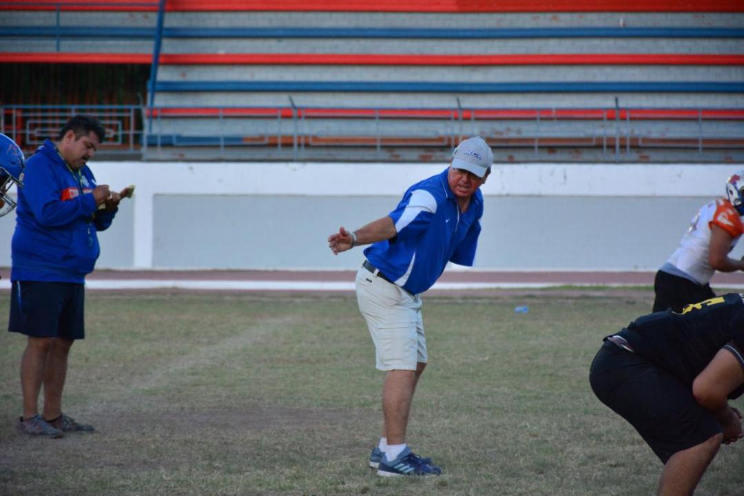 El entrenador de 55 años de edad, continúa ese miércoles, jueves y viernes con sus ponencias a entrenadores de la Liga Universitaria de Futbol Americano de la UAT y con su aportación al equipo de Liga Mayor en las practicas vespertinas.