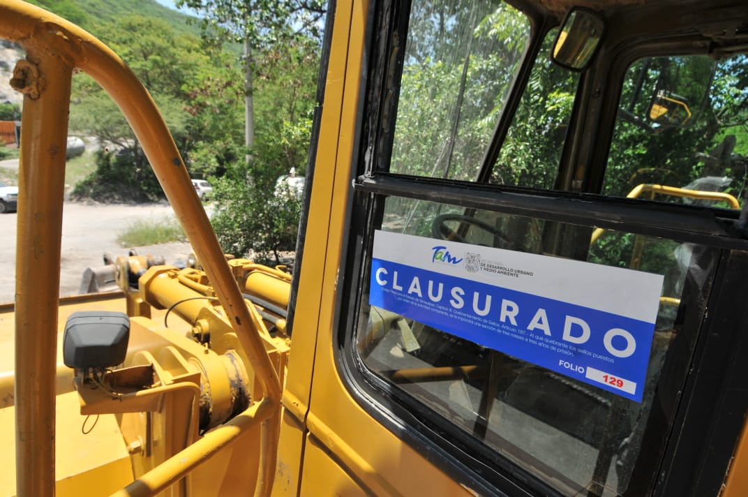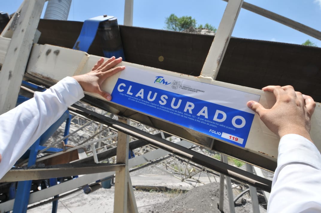 El Mante, Tamps.- Por carecer de permiso de impacto ambiental y violar del Código para el Desarrollo Sustentable del Estado de Tamaulipas, Gobierno del Estado clausuró el banco de materiales ubicado en Congregación Quintero. Como medida se suspensión provisional se procedió a colocar los sellos de dicha clausura en la maquinaria con la cual desarrollaban la actividad.