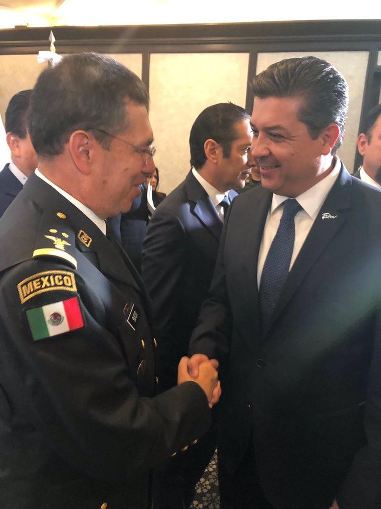 Posteriormente, los integrantes de la Comisión Ejecutiva de Seguridad y Justicia de la CONAGO, a la que pertenece García Cabeza de Vaca, sostuvieron una reunión de trabajo con los Secretarios de Seguridad y Protección Ciudadana, Alfonso Durazo Montaño; el Secretario de la Defensa Nacional, General Luis Cresencio Sandoval González; y el Secretario de Marina, Almirante José Rafael Ojeda Durán.