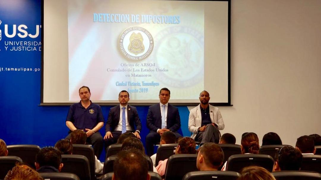 Ciudad Victoria, Tamaulipas.- Personal del Consulado General de los Estados Unidos en Matamoros llevó acabo la capacitación de 275 servidores públicos de la Procuraduría General de Justicia del Estado (PGJT), la Secretaría de Seguridad Pública (SSP), el Centro Estatal de Evaluación y Control de Confianza (C3), el Centro de Comando, Control, Comunicaciones y Cómputo (C4) y de la Universidad de Seguridad y Justicia de Tamaulipas.