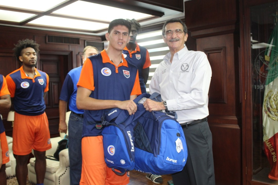 Victoria, Tamaulipas.- A unas horas de la presentación ante su afición, jugadores, cuerpo técnico y directiva del Club Correcaminos de la Liga Nacional de Baloncesto Profesional, realizaron una visita de cortesía al Rector de la Universidad Autónoma de Tamaulipas, Ing. José Andrés Suárez Fernández.