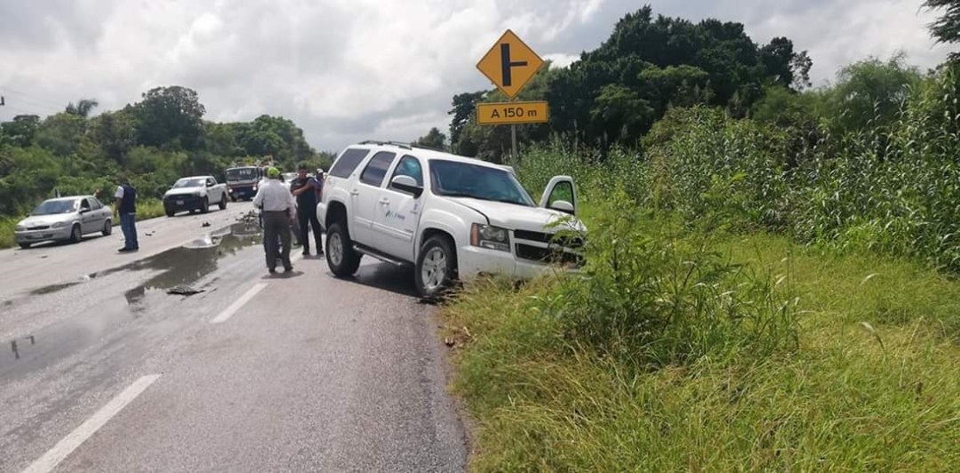 Sobre la carretera Mante-Limón, en el kilómetro 105 sufrió un percance con una unidad particular y la camioneta oficial del ayuntamiento.