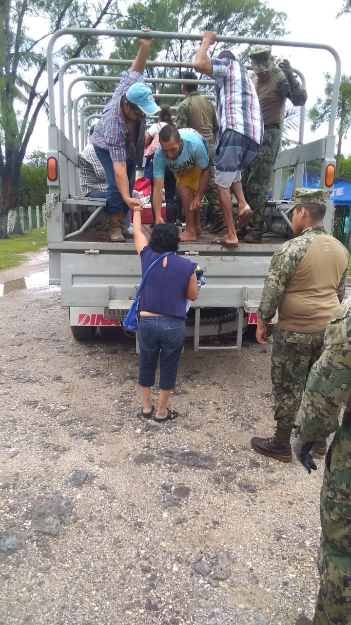 En coordinación con DIF y Protección Civil municipal se habilitó un refugio temporal en la escuela Benito Juárez, ubicado en el poblado Barra del Tordo, en el cual se encuentran refugiadas cerca de 350 personas y se llevó a cabo el corte del suministro eléctrico como medida preventiva.