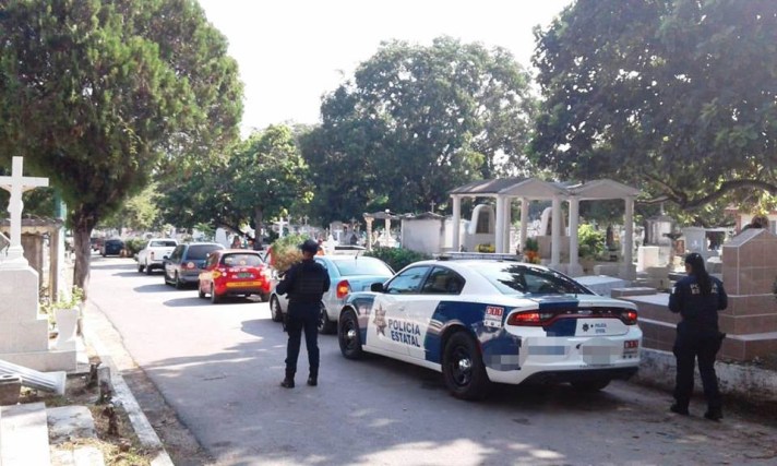 El despliegue de efectivos estatales se lleva a cabo del 1 al 3 de noviembre en coordinación con los Gobiernos Municipales; los oficiales realizan recorridos perimetrales en torno a los camposantos, además de rondines pie a tierra para brindar atención a los ciudadanos que visiten a sus fieles difuntos.