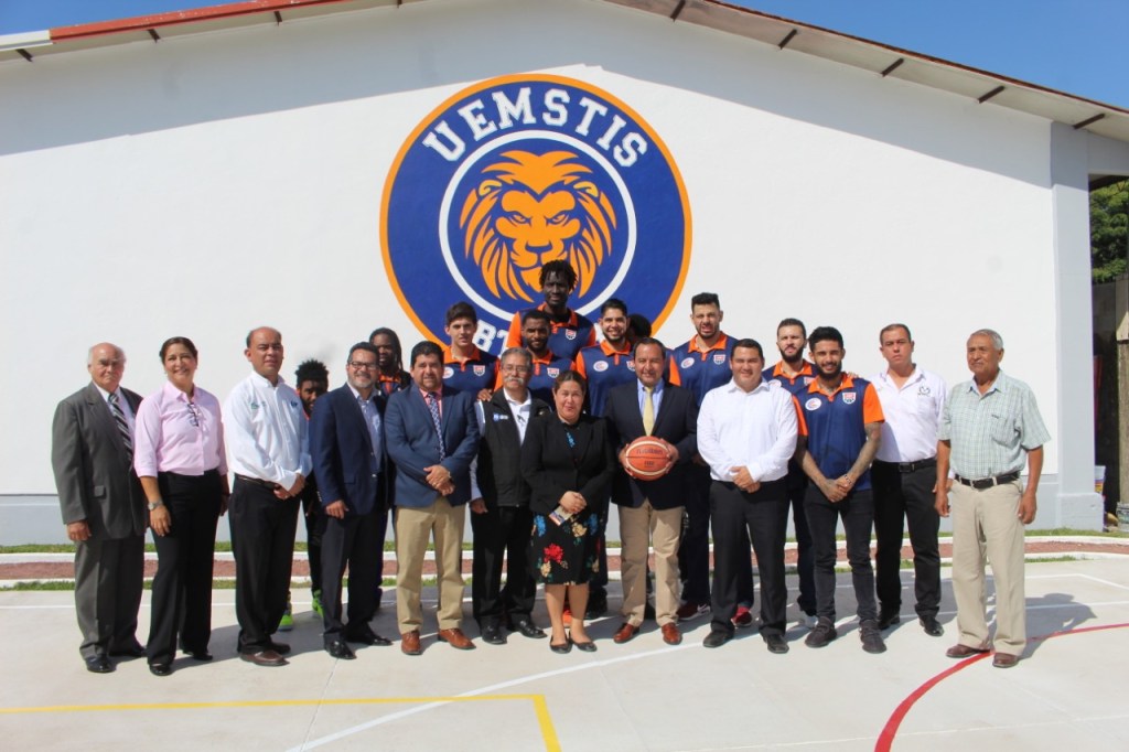 Victoria, Tamaulipas.- Jugadores del Club Correcaminos UAT de la Liga Sisnova LNBP, asistieron como invitados de honor a la apertura de la cancha de básquetbol, que oficialmente fue inaugurada en el CBTIS 236, por autoridades de esta institución y de Educación Media Superior de la entidad.