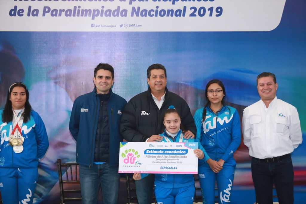 Ante, los medallistas Karla López Herrera, Priscila Chávez Nava y Jesús Salazar López, y atletas de los municipios de Nuevo Laredo, Reynosa, Victoria, Altamira, Madero y Tampico, el mandatario anunció que el Instituto del Deporte (INDE) entregará a los ganadores de las Paralimpiadas Nacionales 2019, becas individuales a partir de diciembre del año en curso, de manera mensual hasta noviembre del 2020.