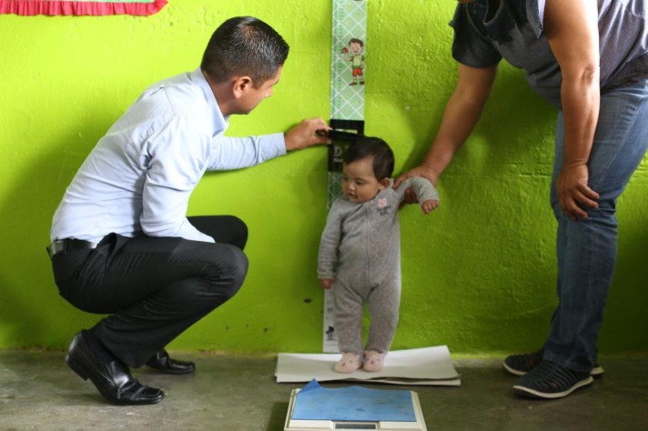 Durante la entrega de los apoyos alimenticios, se les tomó medida de talla y peso a las niñas y niño, con la finalidad de llevar el control de su desarrollo y crecimiento integral.