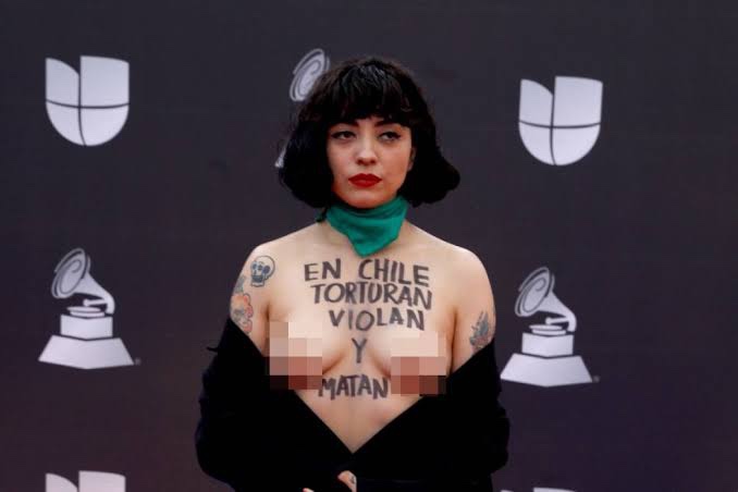 Mon Laferte hizo lo impensable durante su paso en la alfombra roja de los Latin Grammy 2019 al quedar en topless y mostrar sus pechos en protesta por la actual situación que se vive en su país, Chile.