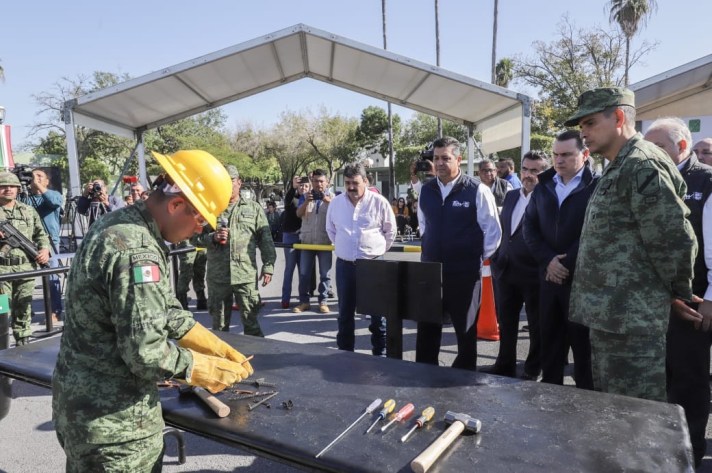 Reynosa, Tam.- En el marco de la ceremonia de destrucción de mil seiscientas armas de fuego realizado en la 8va Zona Militar, el Gobernador, Francisco García Cabeza de Vaca, hizo un llamado a las autoridades competentes a combatir el tráfico de armamento que ingresa al país a través de la frontera norte.