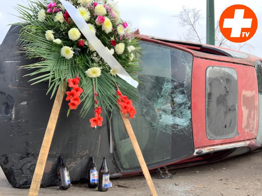 Ciudad Victoria, Tamps.- Esta mañana en uno de los principales cruceros de la capital tamaulipeca, las autoridades colocaron un automóvil volcado con una corona de flores y envases vacíos, con el objetivo de crear conciencia entre la población acerca de los peligros de conducir en estado de ebriedad.