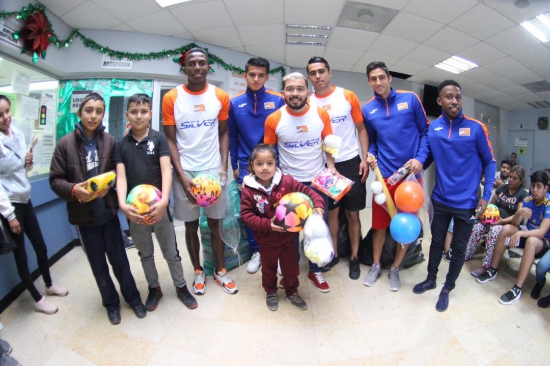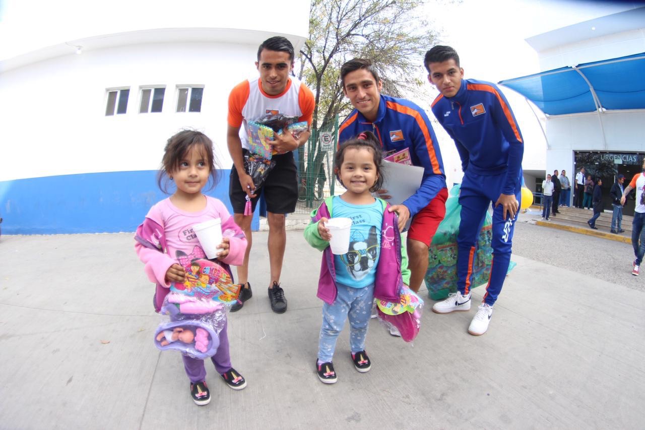 Entre risas,abrazos y la tradicional foto del recuerdo, Sergio Terán, Esneyder Mena, José Juan García, Yesith Martínez, Kevin Gutiérrez, Aarón Barrera, Oliver Ortíz y Abraham Vázquez entregaron los juguetes donados por la afición de Correcaminos.