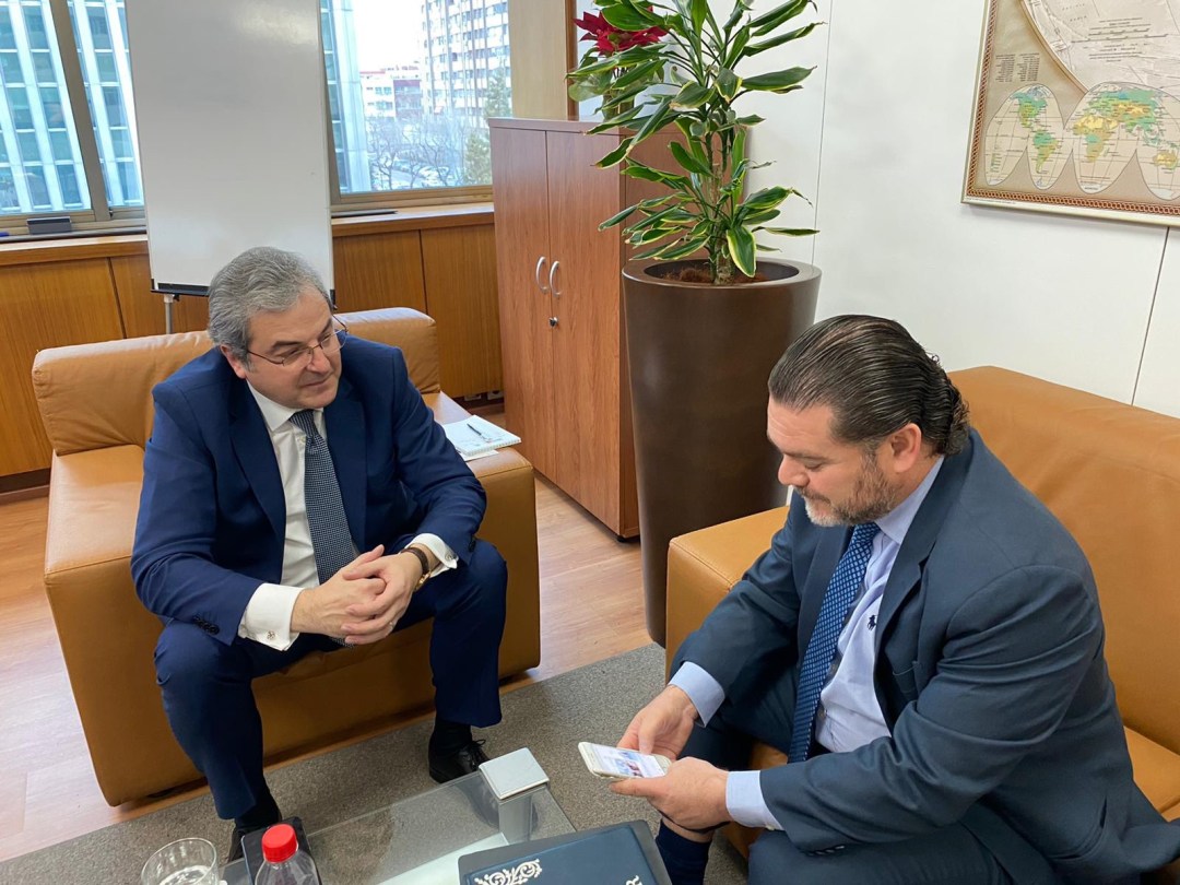 Madrid, España.- En el marco previo a la participación de Tamaulipas en la Feria Internacional de Turismo, Fernando Olivera Rocha, secretario de Turismo estatal, sostuvo una reunión con Ion Vilcu, director del Departamento de Miembros Afiliados la Organización Mundial del Turismo.