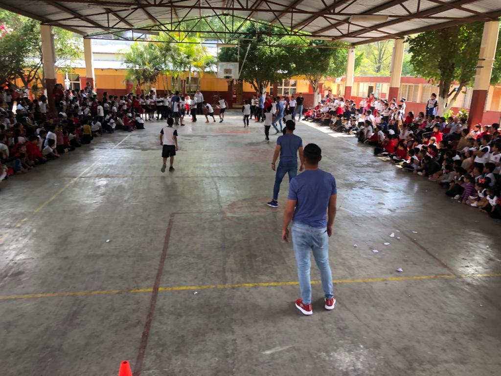 Alumnos, personal administrativo y docentes, encabezados por el Director Gilberto Ruiz, dieron la bienvenida al equipo de Victoria, quienes se presentaron ante más de 600 “pequeñines” quiene recibieron con alegría a Correcaminos.