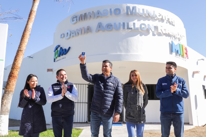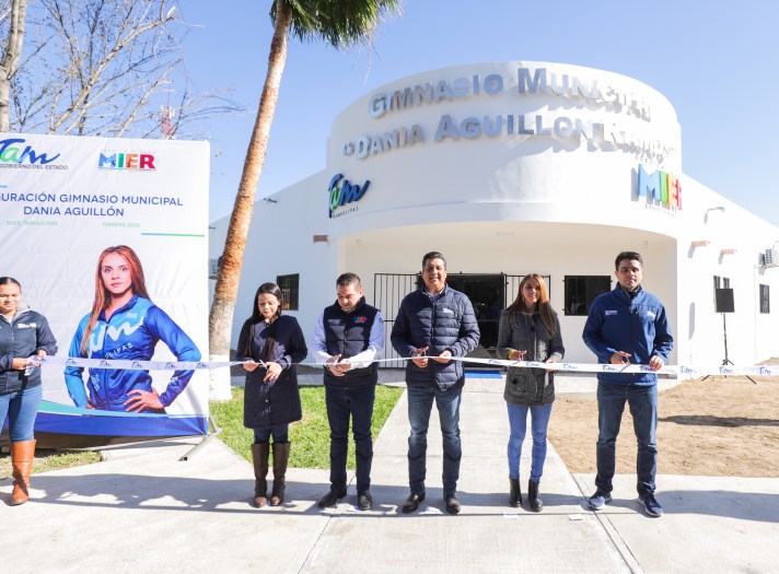 Ciudad Mier, Tamaulipas.- El gobernador, Francisco García Cabeza de Vaca, inauguró en esta ciudad el Gimnasio Municipal «Dania Aguillón Ramos», en reconocimiento a la trayectoria de esta tamaulipeca como atleta de alto rendimiento y medallista internacional.