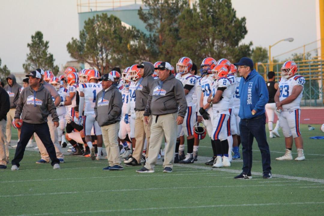 Oscar Garza Pérez, Head Coach de Correcaminos UAT encabeza la comitiva, acompañado por el Coordinador de Liga Mayor en Victoria, Gabriel Moreno Delgadillo y el Representante Institucional de la UAT ante la ONEFA, Igor Aragón Arias.