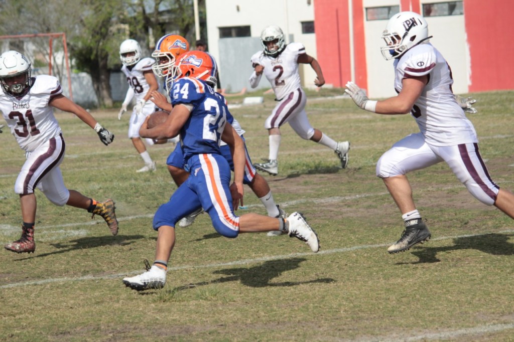 En el desarrollo del partido, el primer cuarto fue una lucha de defensas y mantuvieron el cero en estos primeros 15 minutos, incluso en el segundo periodo prevaleció la misma tendencia, hasta que apareció el Quarterback (8) Jacob Ramírez Vázquez, para hacer blanco con (7) Héctor Hernández Torres, para firmar el primer touchdown de la tarde.