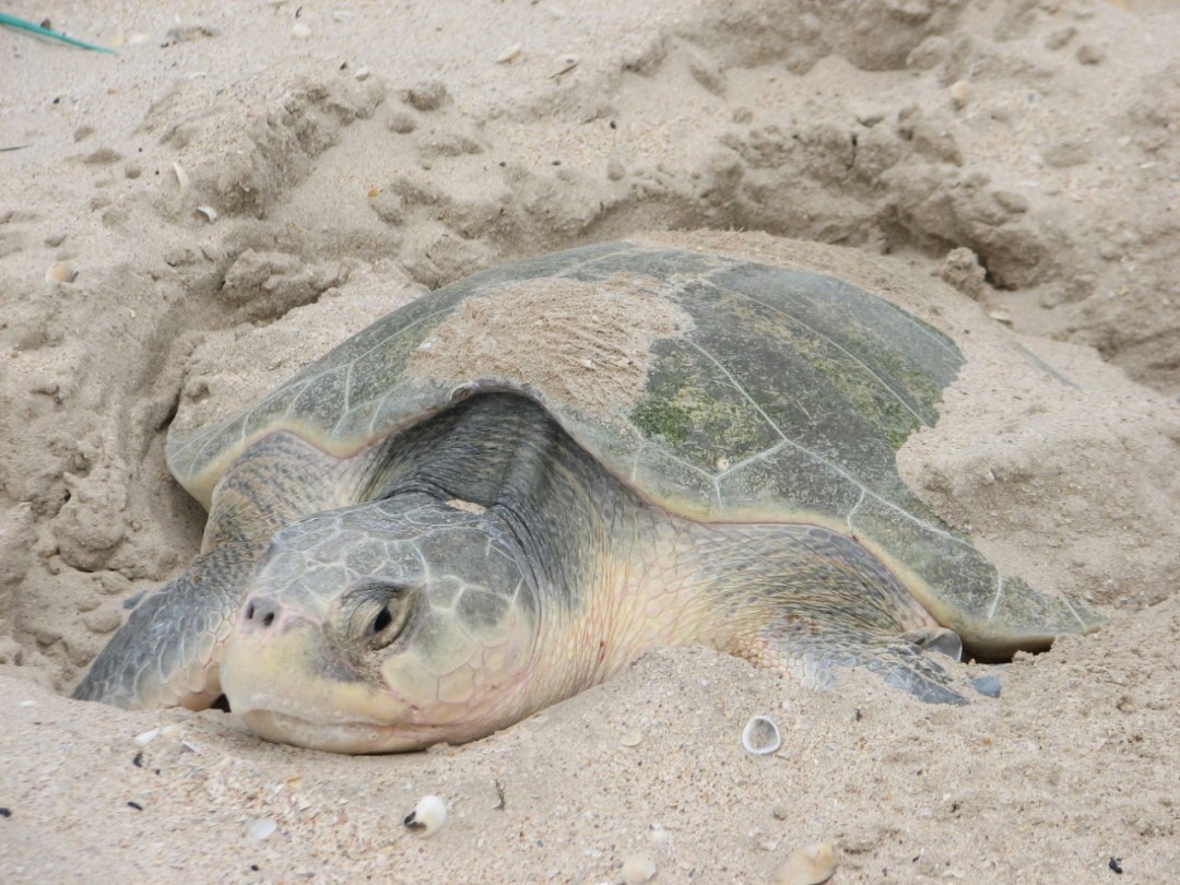 Lo mismo otras especies de tortugas marinas que llegan a anidar a nuestras costas, como la tortuga Verde (Chelonia mydas), Carey (Eretmochelys imbricata), Laúd (Dermochelys coriácea), Caguama.