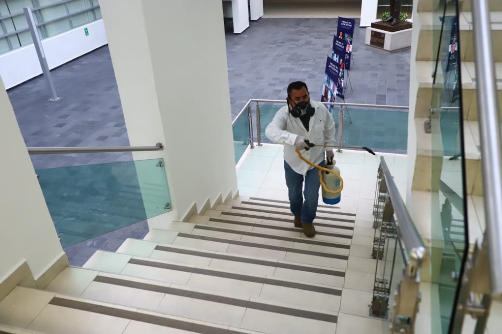 Asimismo, el personal de Servicios Generales se encarga de desinfectar todos los espacios posibles, a fin de mantener las medidas estrictas de salud que han recomendado las instituciones competentes.