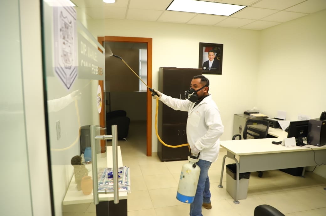 Lo anterior, son parte de las medidas sanitarias que se implementan para atender la contingencia por el coronavirus; por ello este lunes se esterilizaron desde las oficinas de las Diputadas y Diputados, el Recinto Legislativo, así como las salas de Comisiones, área de Presidencia y Secretaría General, elevadores, pasa manos y oficinas en general.