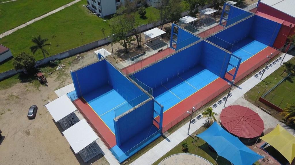 Acompañado por el alcalde, Jesús Nader; el senador, Ismael García Cabeza de Vaca; el director general del Instituto del Deporte de Tamaulipas, Carlos Fernández Altamirano; y el Secretario General de Gobierno, César Augusto Verástegui Ostos; el titular del Ejecutivo Estatal supervisó también el avance de la rehabilitación de las canchas de frontón en la Unidad Deportiva de Tampico, consistente en la renovación de canchas, alumbrado y gradas de este complejo.