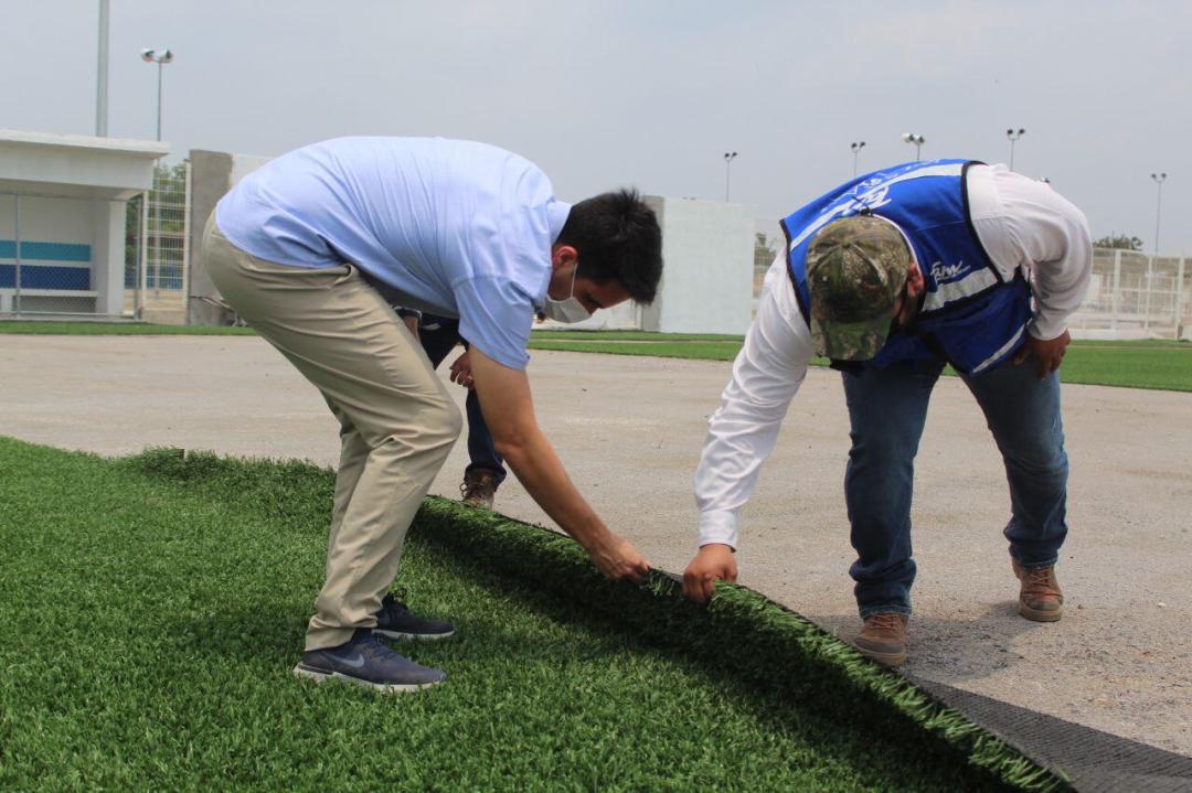 Carlos Fernández, Director General del Instituto del Deporte supervisó los trabajos en cancha de fútbol y béisbol González.