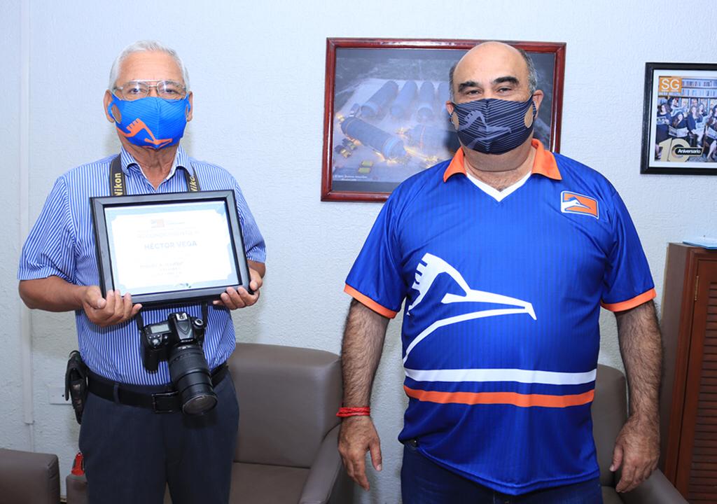 El Presidente del Club de Fútbol Correcaminos Miguel Mansur Pedraza entregó un merecido reconocimiento al fotoperiodista Héctor Vega por ser parte de la historia de Correcaminos capturando imágenes en cada partido.
