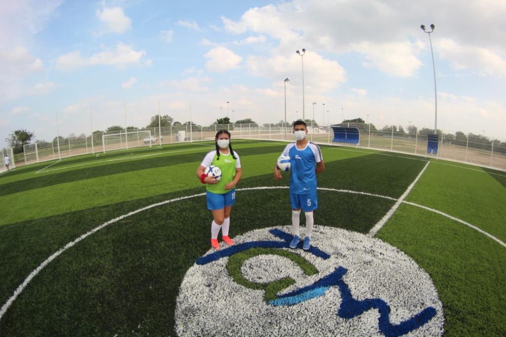 La cancha de fútbol cuenta con pasto sintético de primera generación, porterías con redes nuevas, sanitarios, bancas para los jugadores, graderío para aficionados e iluminación tipo led para el terreno de juego.