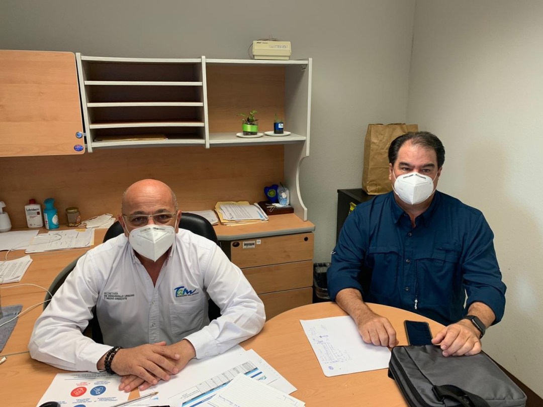 La encomienda que recibieron del Gobernador Francisco García Cabeza de Vaca el secretario de Desarrollo Urbano y Medio Ambiente, Gilberto Estrella Hernández y el subsecretario de Desarrollo Económico, Jesús Villarreal Cantú es invitar a la ciudadanía para cumplir las medidas sanitarias y evitar contagios.
