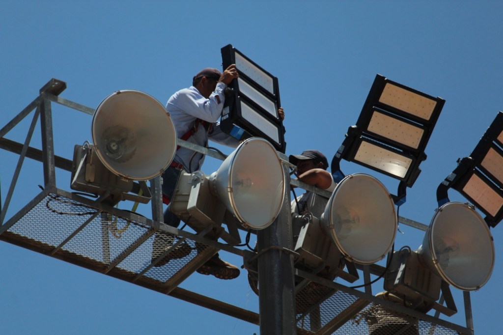 Estos trabajos consistieron en la sustitución total de la iluminación anterior para instalar luminarias tipo led de última generación, además se realizó la rehabilitación en las líneas eléctricas de la zona acuática de este recinto deportivo esto con el fin de garantizar a los deportistas tengan un área digna para la realización de su disciplina.