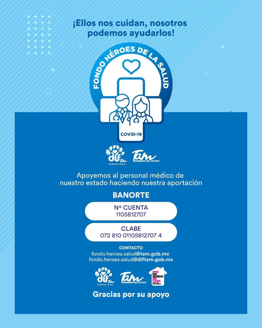El DIF estatal, puede otorgar comprobante de donación deducible de impuestos y el interesado deberá mandar los comprobantes de transferencia, su RFC al correo electrónico fondo.heroes.salud@diftam.gob.mx.