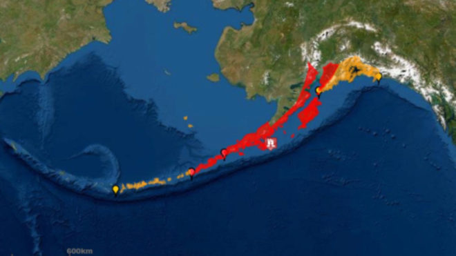 El Centro de Alerta de Tsunamis y la Administración Nacional Oceánica y Atmosférica emitieron un mensaje de alerta, en el que ha explicado que las regiones que corrían mayor riesgo de verse afectadas por el tsunami eran el sur de Alaska y la península de Alaska: las costas del Pacífico desde Kennedy Entrance (40 millas al suroeste de Homer) hasta Unimak Pass.