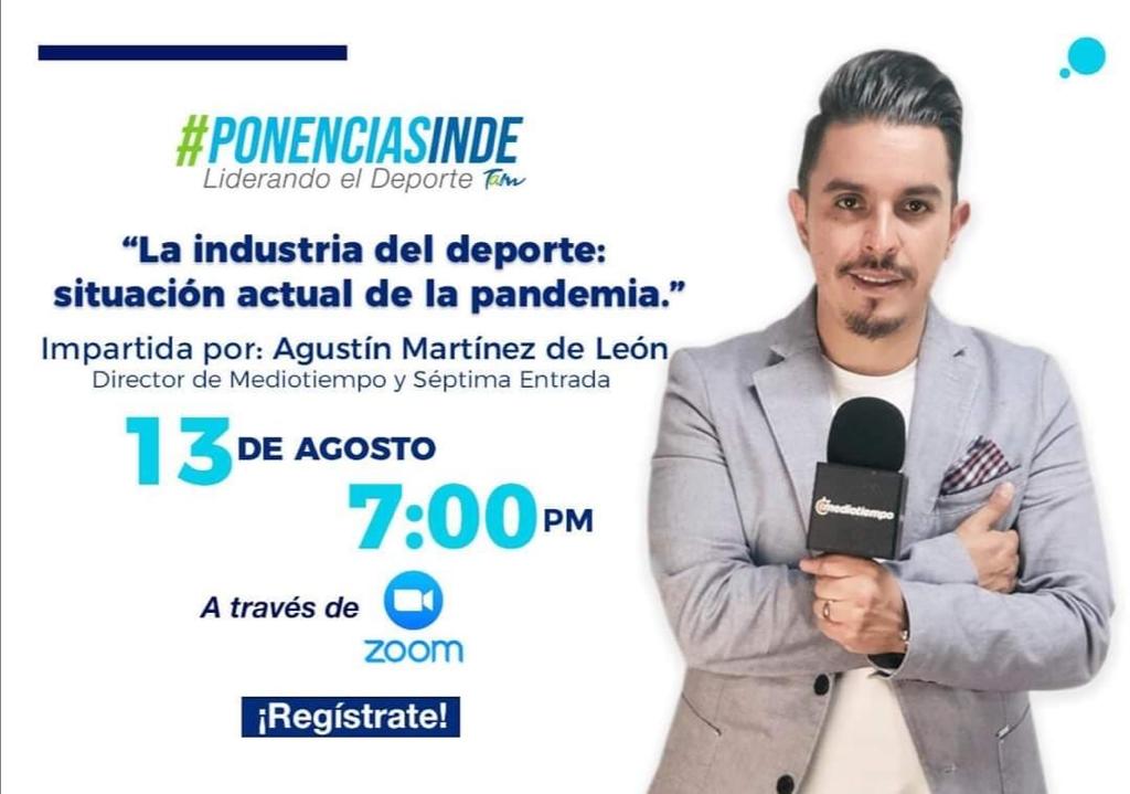 El próximo 13 de agosto a las 19:00, será la plática con Agustín Martínez, director de Mediotiempo con el tema: »La industria del deporte: situación actual de la pandemia»