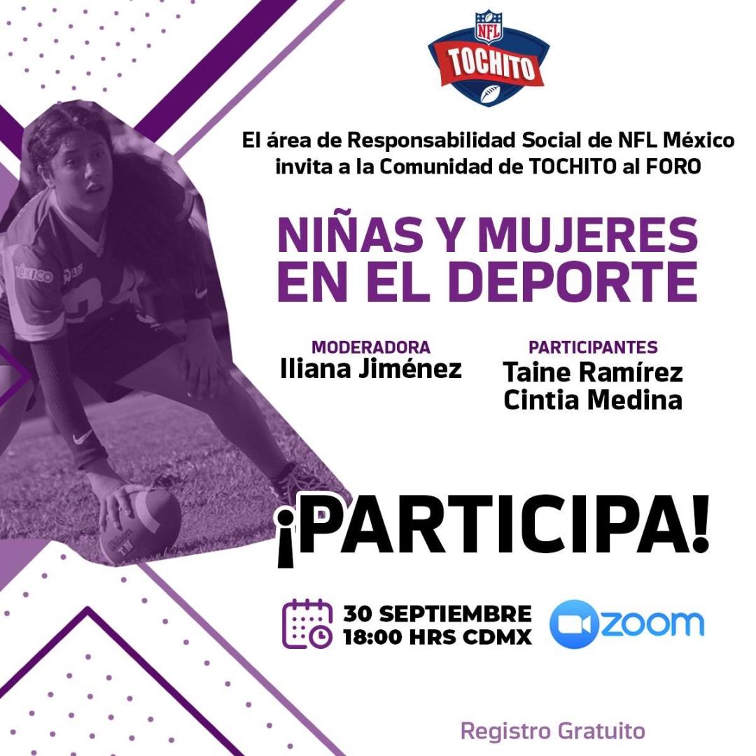 ‘Niñas y Mujeres en el Deporte’ será la primer ponencia organizada por NFL México, en donde Iliana Jiménez, conductora de deportes y primera mexicana en la NBA, será la moderadora; el foro tendrá como participantes a Taine Ramírez, Master Coach en programación neurolingüística y Cintia Medina, conductora deportiva y especialista en NFL.