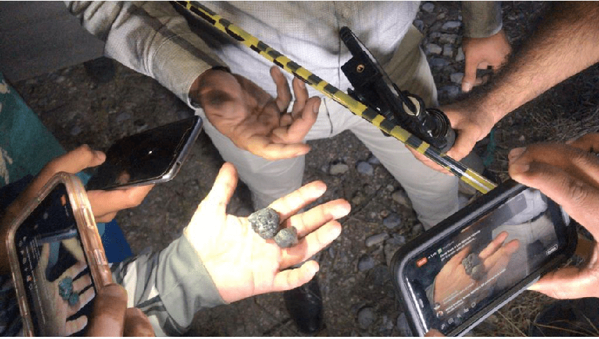 Vecinos dijeron haber avistado la caída de un objeto en la zona y el incendio tras su impacto; una vez apagado el fuego fueron recuperados supuestos restos del meteorito, que serán puestos a disposición de las autoridades correspondientes para determinar si se tratan de fragmentos de un cuerpo celeste.