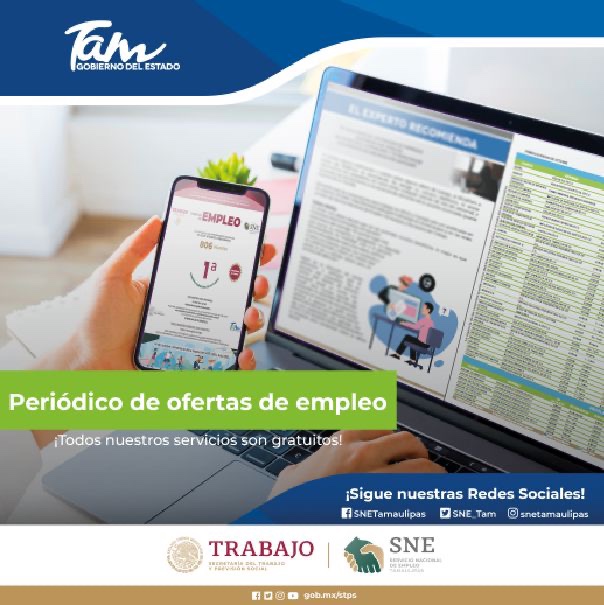 Se trata de una publicación digital que realiza periódicamente la Secretaría del Trabajo en coordinación con el Servicio Nacional de Empleo Tamaulipas, para ofertar de manera sencilla y accesible las oportunidades laborales que hay en el mercado.