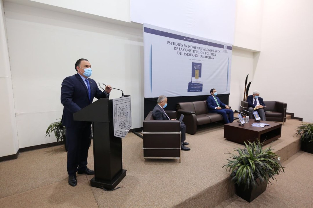 Durante las actividades de este 5 de febrero, se presentó el libro “Estudios en Homenaje a los 100 años de la Constitución Política del Estado de Tamaulipas”, donde el Presidente de la Junta de Coordinación Política del Congreso, resaltó que la actualización del máximo ordenamiento local refleja el estado moderno y próspero que requiere de un marco normativo vanguardista.